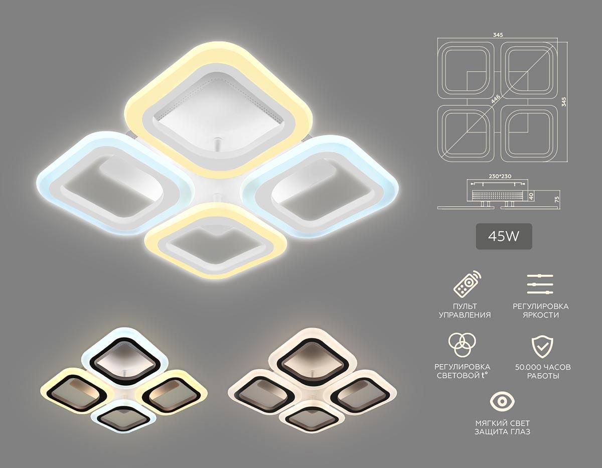Характеристики Люстра потолочная светодиодная Ambrella light FA4371 с пультом д/у