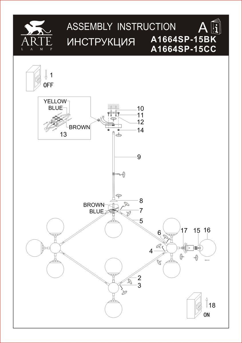 Характеристики Люстра на штанге Arte Lamp A1664SP-15CC
