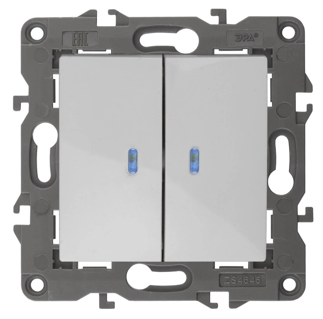 Выключатель двухклавишный с подсветкой ЭРА Elegance 10AX 250V 14-1105-01 Б0034237