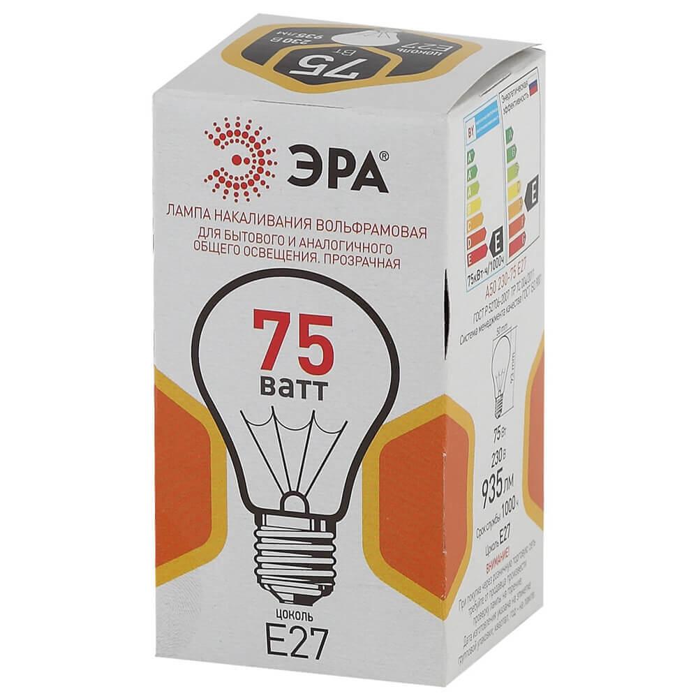 Характеристики Лампа накаливания ЭРА A50 75-230-Е27-CL