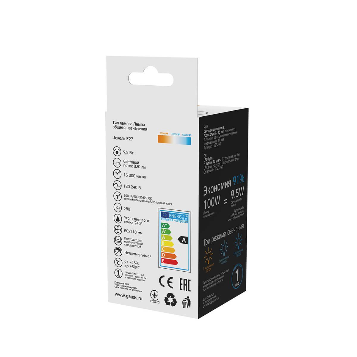Характеристики Лампа диммирующая Gauss 1023240