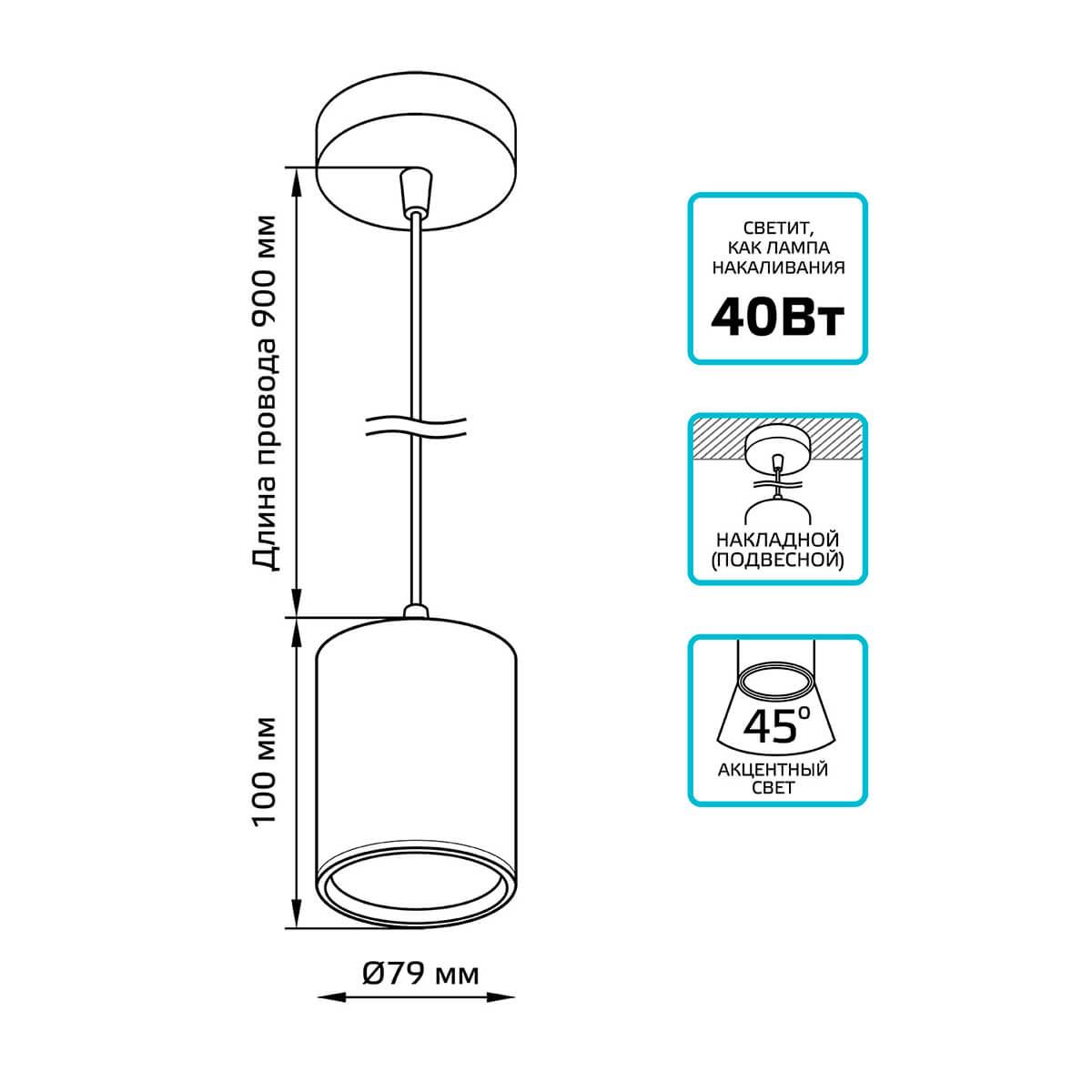 Характеристики Светильник подвесной светодиодный Gauss HD043