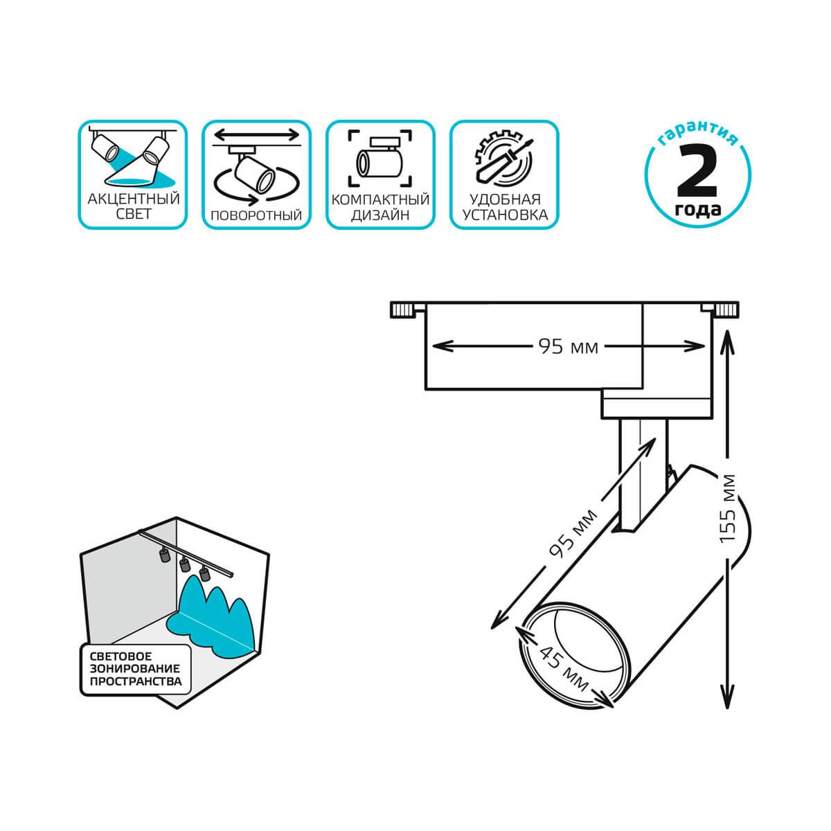 Характеристики Трековый светодиодный светильник Gauss Track Light Led TR077