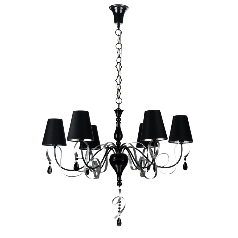 Осветительный прибор хорошо установить в интерьере в стилистике модерн. Основание из металла, цвет черный, подвески черные, плафоны черные из текстиля. Светильник обладает степенью защиты IP20.