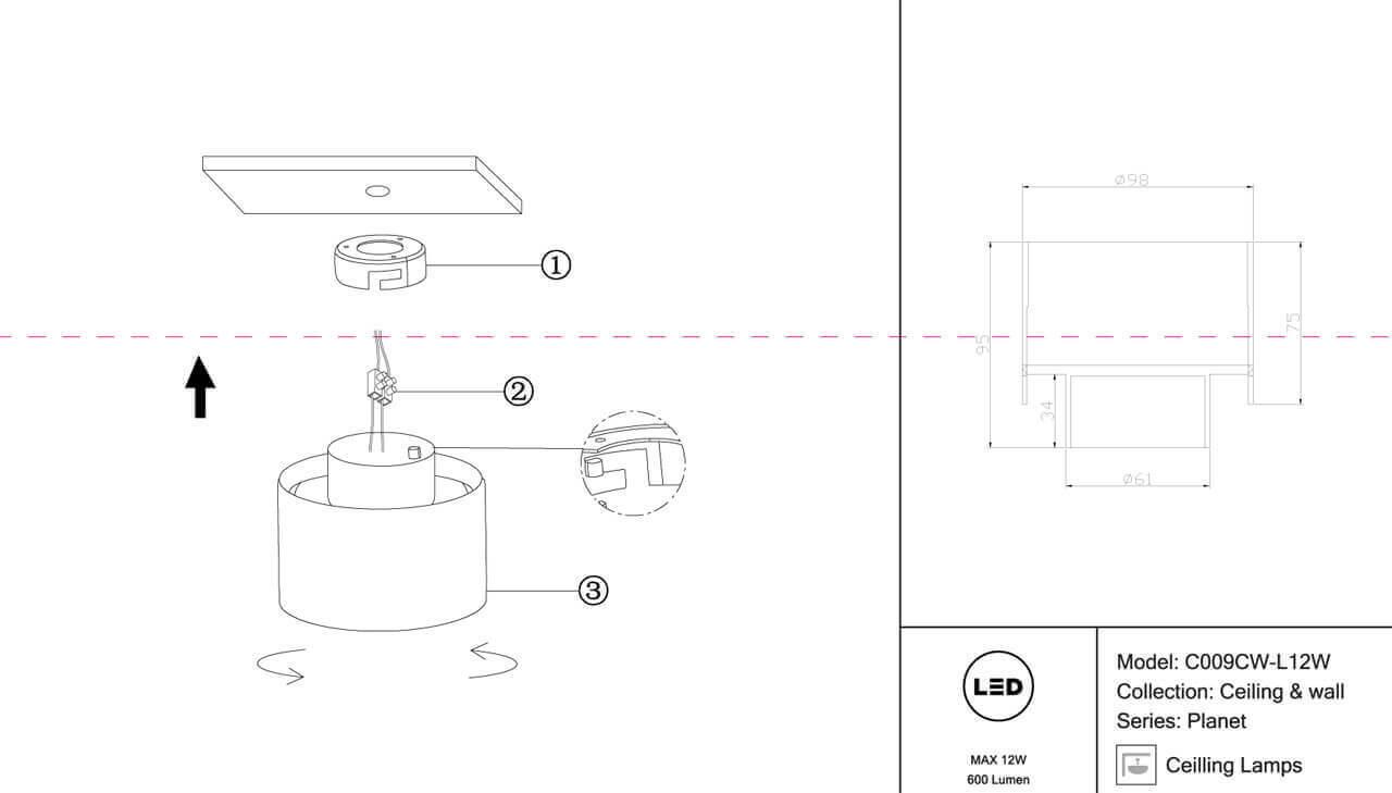 Характеристики Светильник накладный светодиодный Maytoni C009CW-L12W