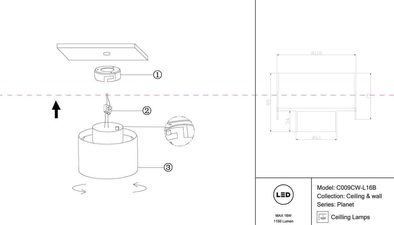 Характеристики Светильник накладный светодиодный Maytoni C009CW-L16B