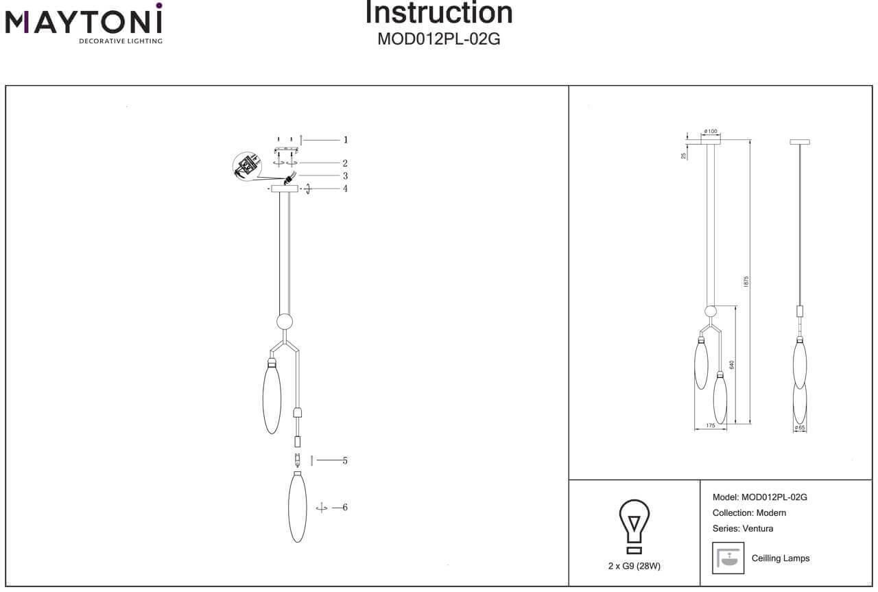 Характеристики Светильник подвесной галогеновый Maytoni MOD012PL-02G