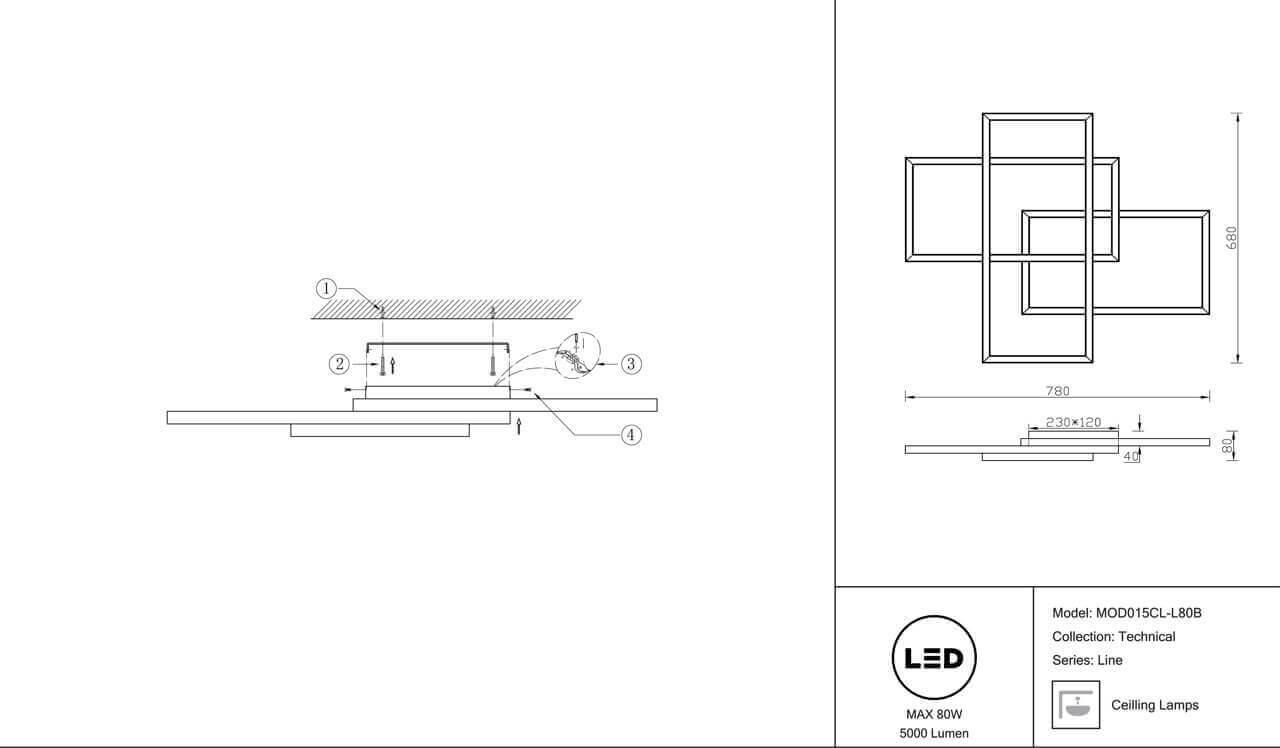 Характеристики Светильник потолочный светодиодный Maytoni MOD015CL-L80B