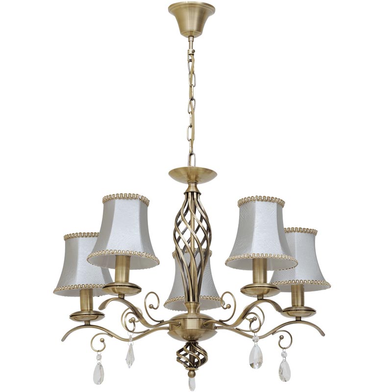 Эту люстру оптимально использовать в помещении,выполненном в стилистике классика и прованс. Арматура из металла, цвет бронзовый, подвески прозрачные, плафоны серебристые из текстиля. Люстра имеет степень защиты от воды IP20.