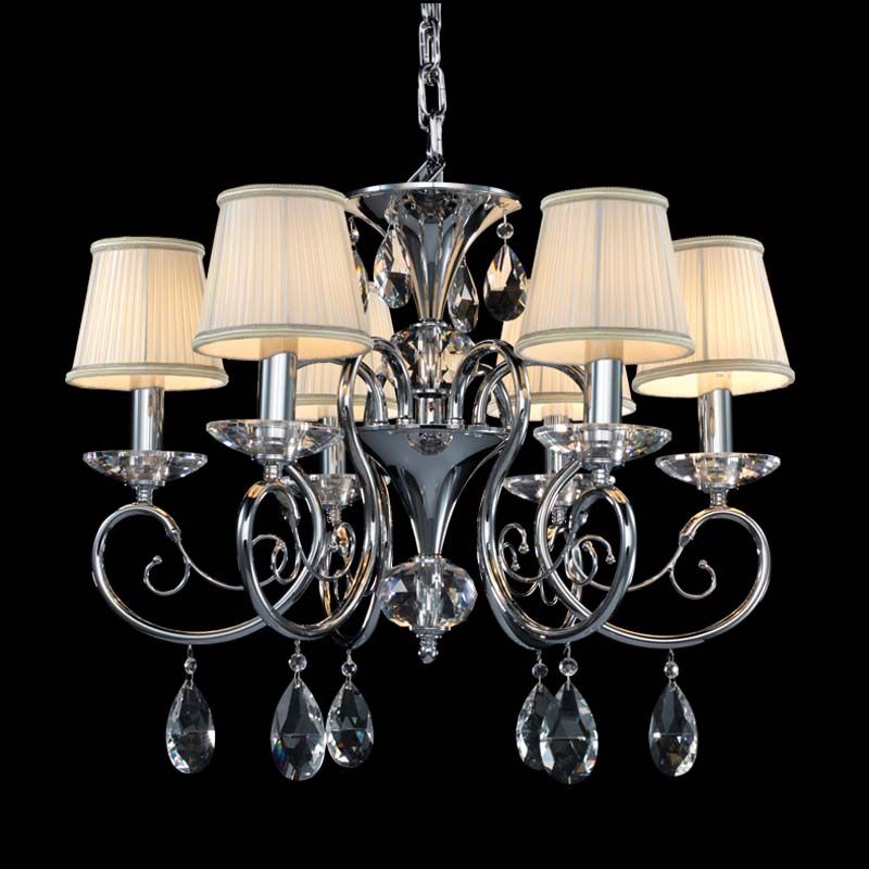 Данный осветительный прибор подвесить в интерьере в стиле классика. Основание из металла и стекла, цвет хромированный, подвески прозрачные, плафоны белые из текстиля. Светильник имеет защиту от воды IP20.