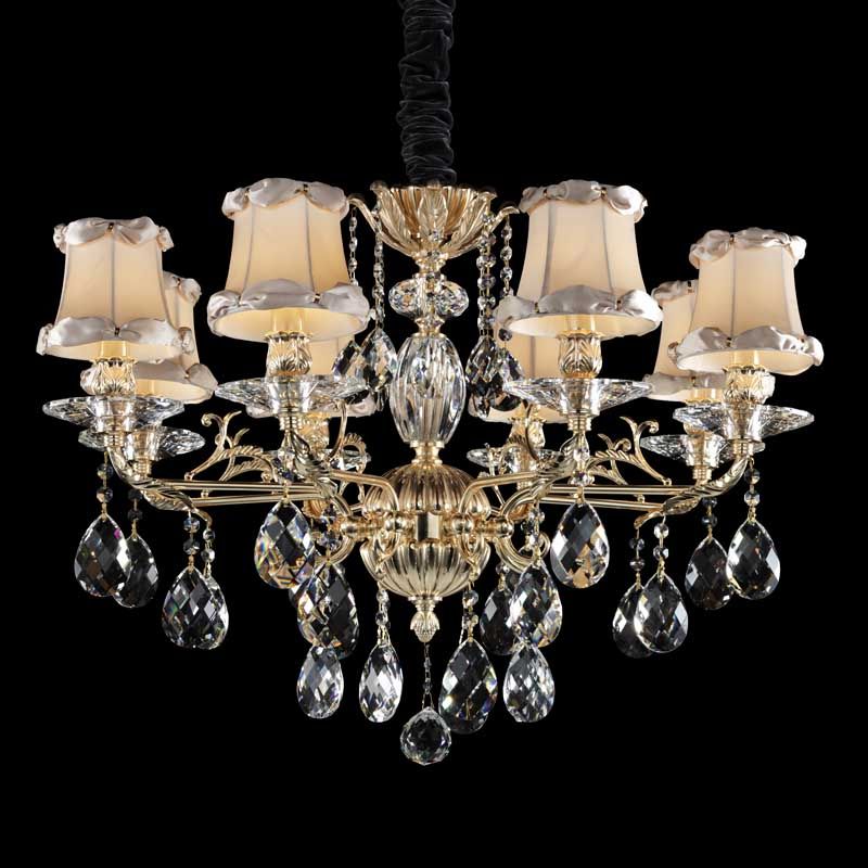 Данную люстру отлично использовать в интерьере,выдержанном в стиле классика. Арматура из металла и стекла, цвет золотой, подвески прозрачные, плафоны белые из текстиля. Люстра имеет защиту IP20.