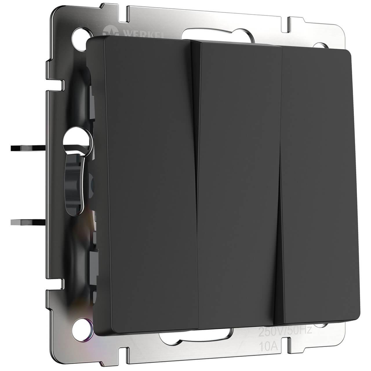 Выключатель трехклавишный Werkel черный матовый W1130008 4690389156755