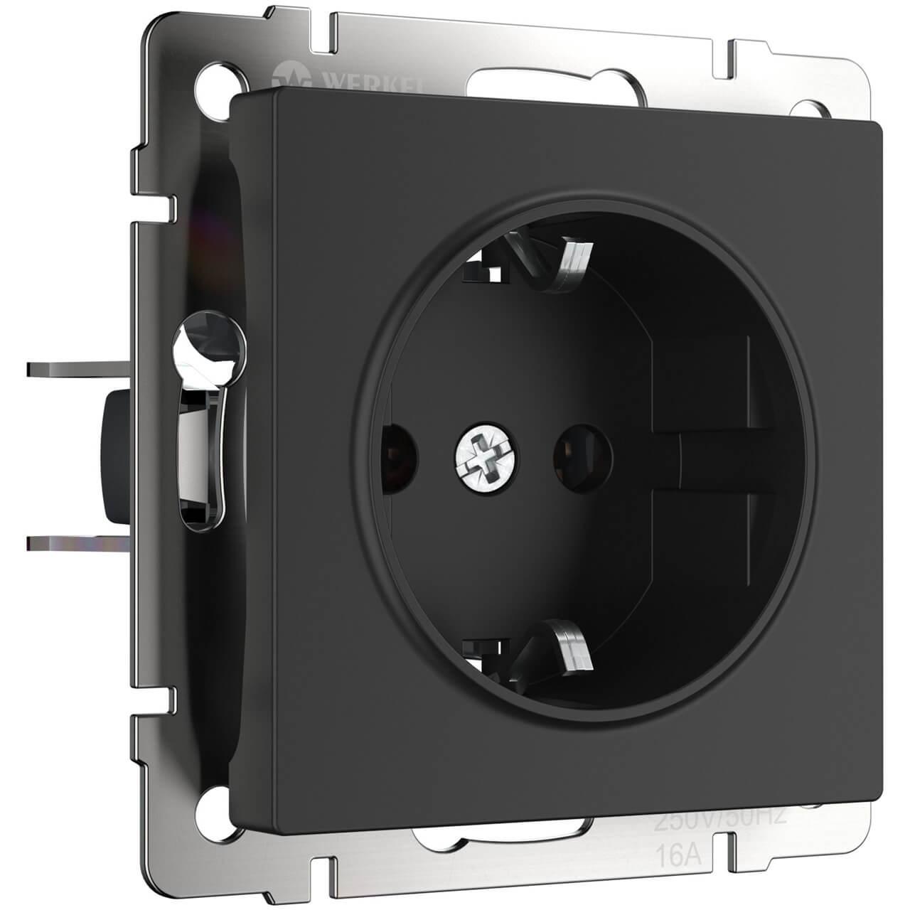 Розетка с заземлением, безвинтовой зажим Werkel черный матовый W1171308 4690389156908