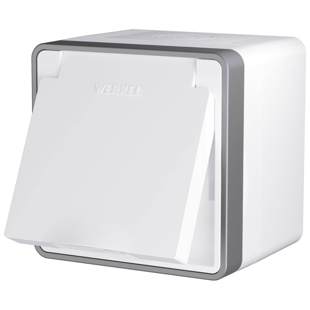 Розетка влагозащищенная с заземлением с защитной крышкой и шторками Werkel Gallant белый W5071201 4690389164583